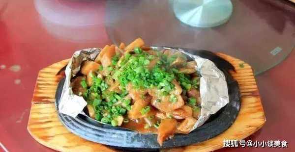 3、鍋內留底油,先加入青椒、紅椒、蒜、薑、蔥炒香,再加入黑胡椒汁和炸芋頭丁,拌勻,拌入適量鮮湯。煮好後,用濕淀粉勾芡,起鍋,放入鋪有蔥花的熱鍋中即可食用。