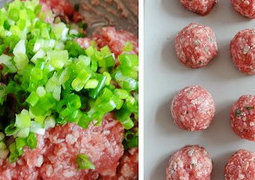 餡料:牛肉絞餡、花椒粉、生抽、鹽、香油、鵪鶉蛋1個、香蔥末