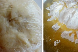 4、水油皮中所有材料徹底揉勻至可以拉出透明薄膜,放入保鮮袋中靜置30分鐘。