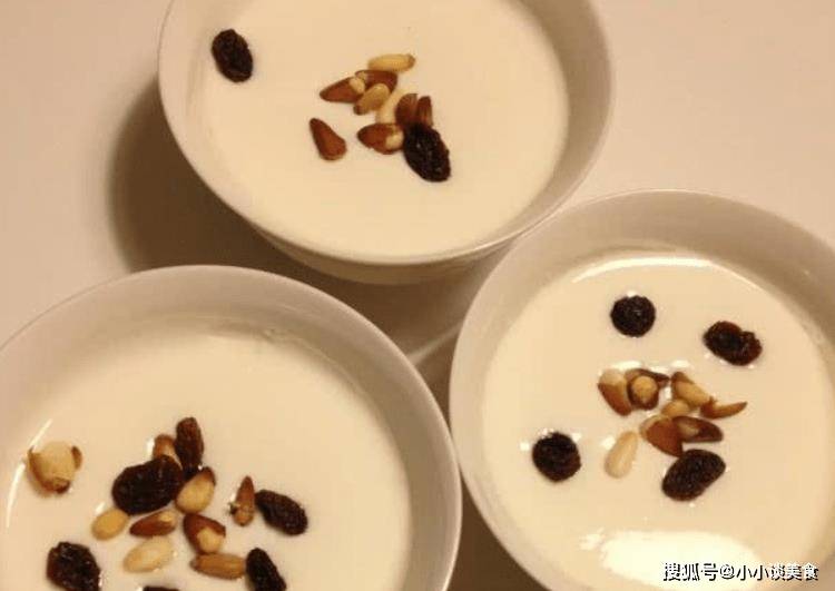 原料:純牛奶400毫升,黃酒或黃酒汁200毫升,白砂糖40克,幹果適量(牛奶與黃酒的比例為2:1);