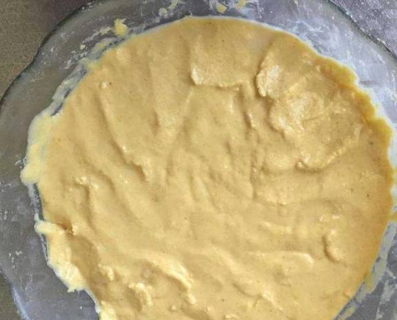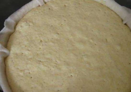 (4)取一深碗或者小盆抹油,將濕面團倒入蓋蓋發酵至2.5倍左右;