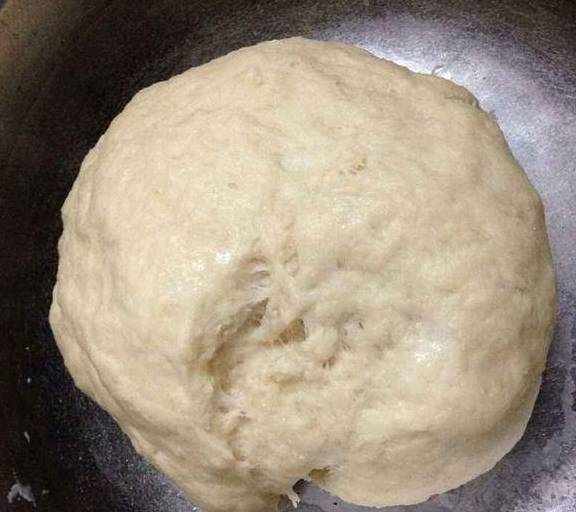 (3)酵母和糖融於水倒入粉類中揉成比較粘手的面團;