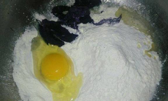 中筋面粉260克,水50克,雞蛋2個,鹽1克,玉米油25克,糖45克,泡打粉2克,小蘇打1克