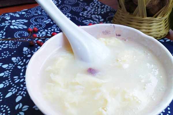 4、每天早上取適量的熟面粉,用清水攪拌成面糊,開水下鍋煮開就可以瞭,最後把一個雞蛋打散一起倒入鍋中。面粉蒸熟之後,再煮的時候很快就能煮好,整過過程不超過3分鐘,沒有生面的澀感,還有紅棗的清甜在裡面。