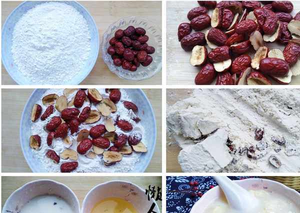 材料準備:面粉500克,紅棗200克,雞蛋1個。