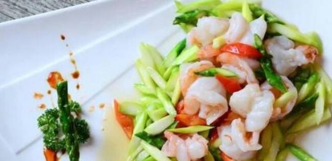 蘆筍250克,蝦仁150克,紅椒片20克,蒜薑末10克。