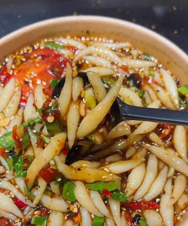 拌料:小番茄、洋蔥、小米辣、煳辣子、大香菜、胡蘿卜絲、黃瓜、蒜、檸檬汁、老陳醋、芝麻油、薑、蠔油、大芫荽