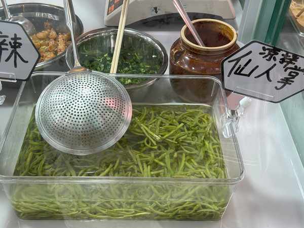 仙人掌作為一種觀賞性植物,也被納入瞭涼拌行列。據瞭解,要先把仙人掌上面的大刺刮除,接著用刷子在流動水中邊沖邊刷,直到把表面的小絨刺清理幹凈,切成細條後過一道沸水,緊接著放入濾網用流水沖洗剩餘粘液,才算處理完成。“拌料很簡單,我們用自己醃制的腐乳,加入蒜泥做成腐乳汁,加點香菜拌拌就可以吃瞭。”劉女士說道。“我見都沒見過,好奇就買瞭嘗嘗,嚼起來像會拉絲的海帶。”獵奇的顧客邊吃邊說著。