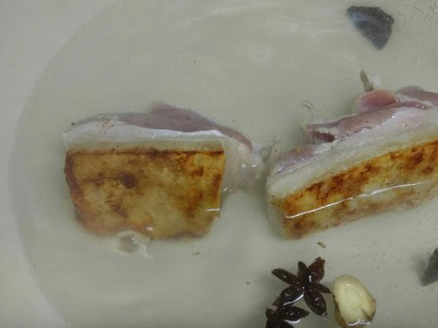 一般大傢都是直接將肉放入鍋內煮,我這之前不同,而是先炕肉皮,這樣肉更香、不膩,入口即化”