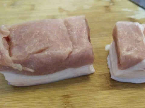 1.將洗好的帶皮五花肉用吸油紙吸去水份,切塊