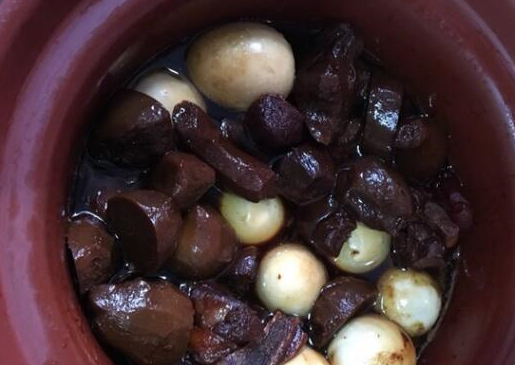 現在可以拿一部分薑和醋出來,薑現在已經沒有辣味,如果明天想要吃豬腳和雞蛋,或者明天要送親人朋友的!晚上才拿部分薑和舊醋加豬腳和雞蛋一起,可以再加點新醋一起煮1-2個小時,喜歡雞蛋硬的要早下,這煲分煲的薑、豬腳和雞蛋,要2-3天吃完!要不豬腳和雞蛋會非常硬,變成隻有薑醋味道沒有豬腳和雞蛋的味道瞭!