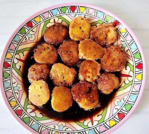 其實是又做瞭南瓜糯米糍,但為瞭把糯米粉全用上就加多瞭,做好放冰箱第二天再吃就硬瞭,於是用它為原材料切片煎瞭做瞭紅糖糍粑。