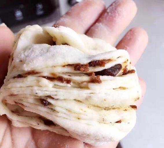 先和面,用我們平時的面粉就可以,這裡和面的時候要註意一定要多揉,一直揉到面團光滑筋道,這樣出來的花卷才更加美味,將揉好的面團搟開成薄片,這裡盡量搟成方形,就更容易卷成花卷瞭。面處理好瞭以後,我們就可以處理紅糖瞭。