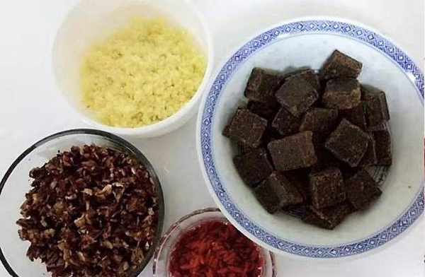 首先需要準備棗、生薑、枸杞、古法紅糖(不要用赤砂糖,赤砂糖做出來的就沒有薑糖膏原本的功效瞭)。紅棗去核,生薑去皮,將它們分別切碎放入碗中備用,再把這些東西分別放入料理機中打碎。然後將這些東西一起放入足夠大的容器中,蓋上保鮮膜,上鍋蒸上三十分鐘,就可以瞭。裝罐頭瓶裡,一天一勺開水沖服。