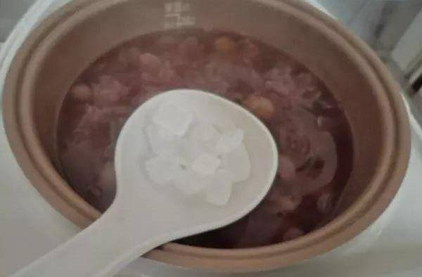 7.煲至紅豆開花,加冰糖後繼續煲。