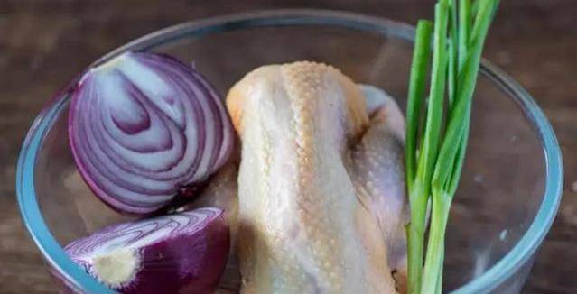 所需食材:食鹽適量,走地雞半隻,洋蔥一個,蔥兩根。