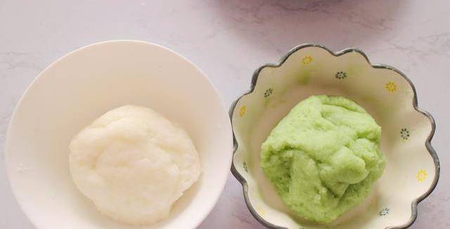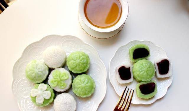 做法:1.在冰皮前混合粉和水揉搓,抹茶冰淇淋的生拌牛肉也和熱水混合攪拌後做成面團,比率是1:1冰的月餅可以做12個左右,2.月餅模具50g,餅皮30g,餡料20g各好,揉成團,紫薯餡是低糖的,餡料可以自己做,也可以換成紅豆水果。
