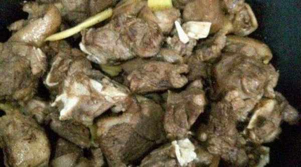 第五步:在鍋中加入高湯或者是清水,水量沒過羊肉即可,水倒入之後翻動一下讓水的顏色也變得和羊肉的顏色一樣就可以瞭。之後加入肉桂皮和花椒,然後小火慢煮。煮到一半的時候大傢會發現水面上有一層白色的泡泡,將它們的扔掉,以免影響湯的味道。