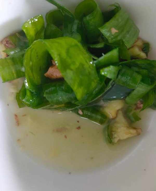 2.蔥葉,薑拍碎,放在碗裡,用手搓,把蔥薑味搓出來後放在魚身上塗抹均勻,去腥味,再放少許鹽醃制10分鐘。