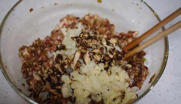 肉餡裡筍子和香菇都是保證餡料鮮美的東西不能去掉哦。