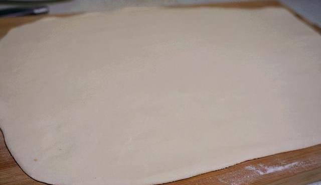 步驟7:這時候就可以用搟面杖搟瞭,一定要輕輕地搟扁,餡冒出來就不好瞭,所以放餡料的時候還不能多。