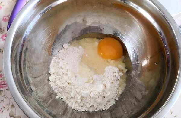 1. 香草餅幹粉加入清水,雞蛋,當然也可以先把清水和雞蛋拌勻,再倒入餅幹粉裡,