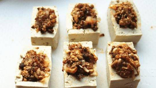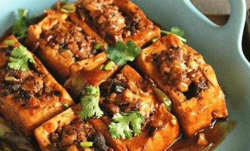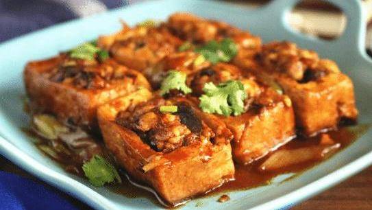 這道菜的主要目的是在豆腐中間挖一個洞,然後把蔬菜和肉放進去,然後加熱成菜。釀制豆腐的主要目的是保證豆腐在塞滿肉的時候不會破裂和肉的味道。這兩樣比較重要,但隻要大小比較好,豆腐就不會裂開,肉餡也好吃。