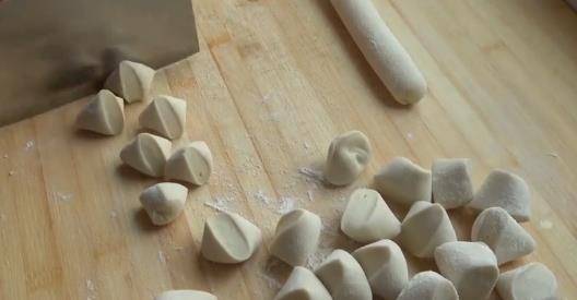 面團醒好後,取出,再揉幾分鐘,就把面團搓成長條,再切成大小相等的劑子。