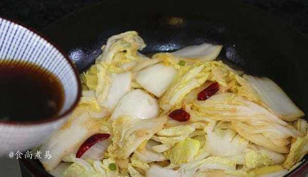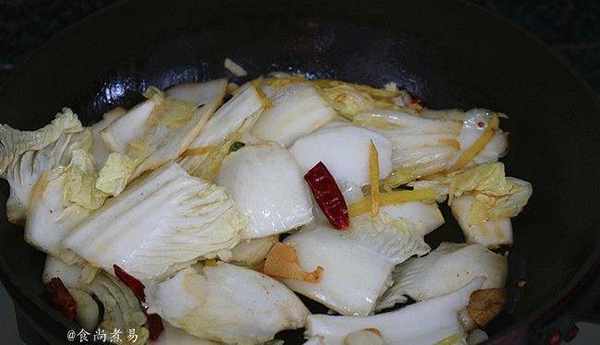 食材大白菜1棵、幹辣椒3個、生薑少許、蒜瓣2個、鹽2克、醬油1湯匙、蘋果醋2湯匙、淀粉1湯匙、食用油少許、清水適量