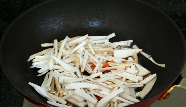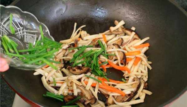 倒入胡蘿卜和杏鮑菇,煸炒片刻