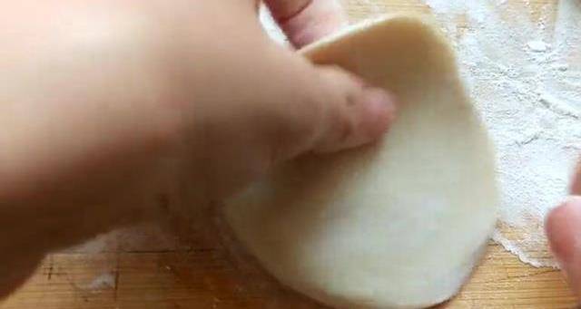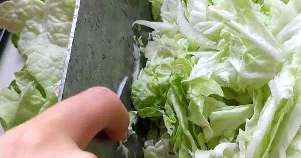 豆腐給他碾碎。這個豆腐裡面加上三克鹽,300克面粉,揉一個光滑的豆腐面團,用土豆淀粉把豆腐放進來裹一層淀粉,跟豆腐煎一下。清洗好的大白菜先給他切成絲,在切好的白菜絲裡放上一些鹽大約兩三克,殺水5分鐘。