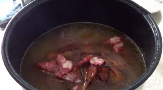 7.將切好的臘腸放入電飯煲中,然後攪拌均勻,放入鍋中按煮飯鍵煮熟。