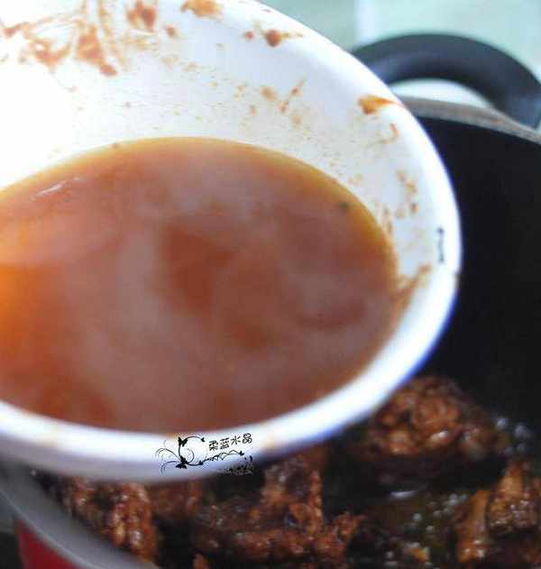 4.醃過的醬料加水倒入鍋中。