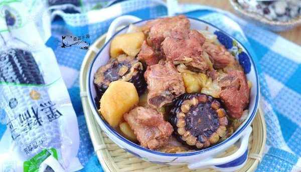 配料:排骨350g黑玉米100g土豆50g