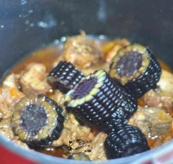 5.放入切成段狀的黑玉米,蓋上鍋蓋燉半小時。