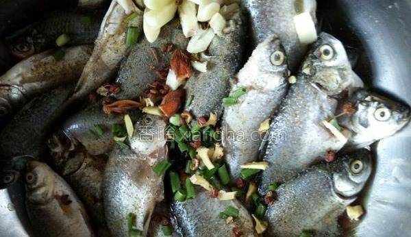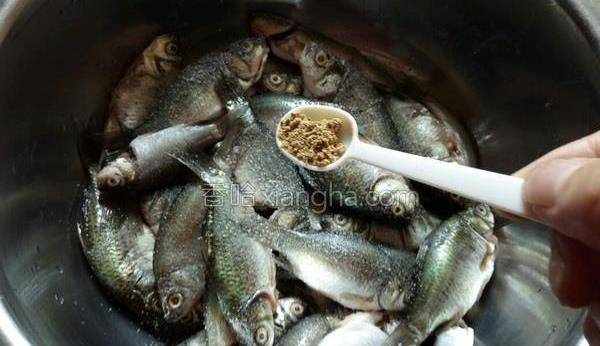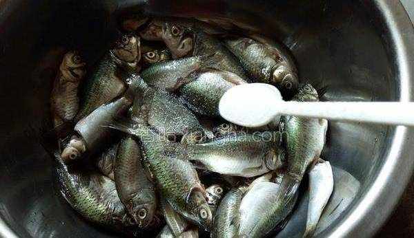 1.小鯽魚洗凈,去內臟和魚鰓,放入適量鹽