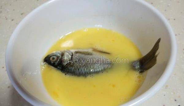 野生小鯽魚400g、雞蛋1個、面粉半碗、油適量、鹽適量、老抽適量、十三香適量、白糖適量、花椒油適量、花椒適量、八角適量、蒜頭適量、生薑適量、料酒適量、黑胡椒粉適量、香蔥1根