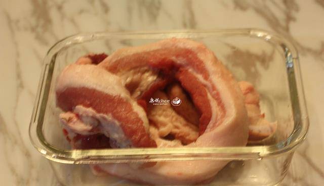 1五花肉洗凈,用溫水沖洗一下,去掉油膩,瀝幹水分