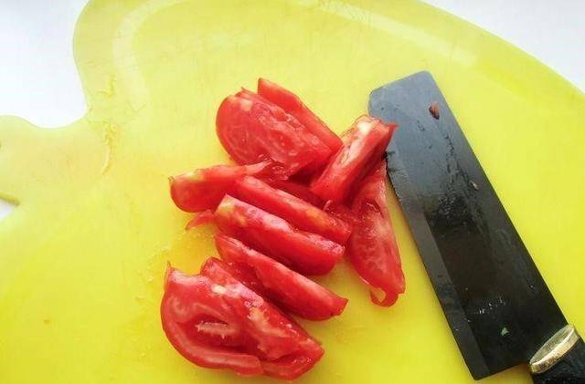 2.把西紅柿,辣椒分別洗凈切塊,香蔥洗凈切段。