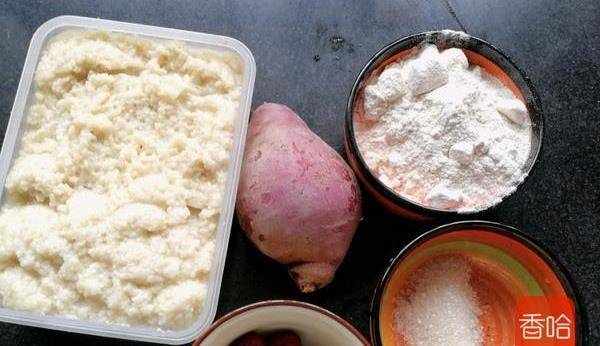 紫薯一個、糯米粉適量、白糖適量、酒糟適量、紅棗12個{幾個都可以}