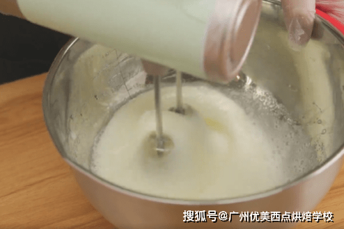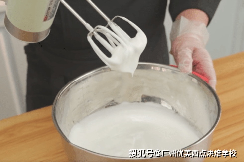 3、蛋清、砂糖和檸檬汁打發蛋白霜至6成