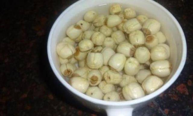 三、在做的時候,提前兩個小時把蓮子也泡一泡,蓮子比較容易泡發,泡上兩個小時左右就行瞭,之後把蓮子去芯,蓮子要是不去心的話,這樣就會不好吃的。