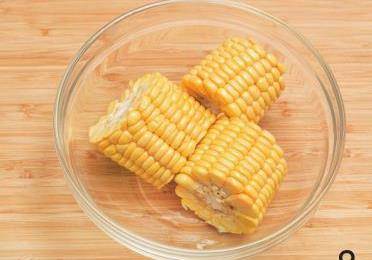 2玉米去皮、須,切成3小段備用。