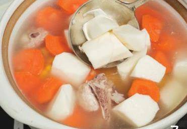 7調小火煮1小時,加入山藥、胡蘿卜繼續煲30分鐘左右。