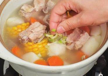 準備材料:排骨250克,山藥1根,鮮玉米1根,胡蘿卜半根,鹽1/2茶匙,料酒1湯匙,薑1塊,蔥1節