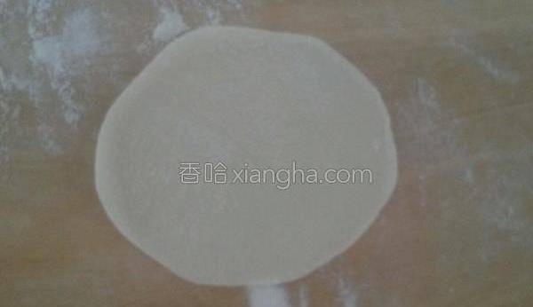 7.取一塊面,團圓壓扁,搟成面皮。