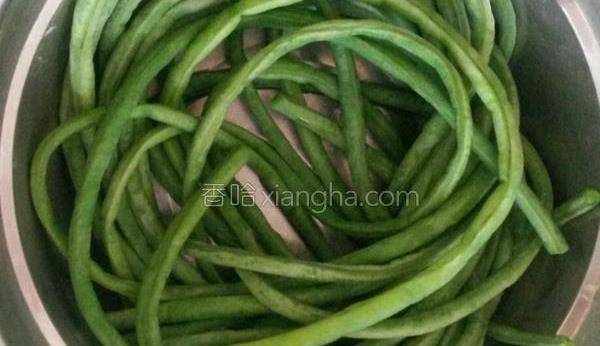 4.豆角掐去頭尾,洗凈,用水焯一下。