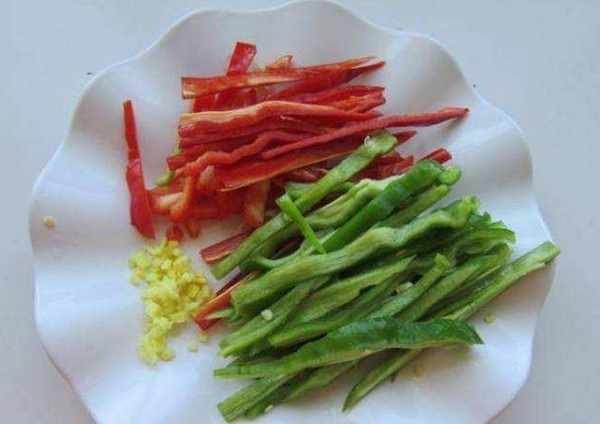 2、在傢青紅辣椒洗幹凈,切成小段,放入盤中備用,將蓮藕去皮洗凈之後切成小塊兒,放到淡鹽水中,這樣可以防止氧化變黑。