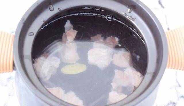 把排骨和薑片放入砂鍋中,加入純凈水,蓋上鍋蓋,啟動煲湯功能,時間默認為2小時