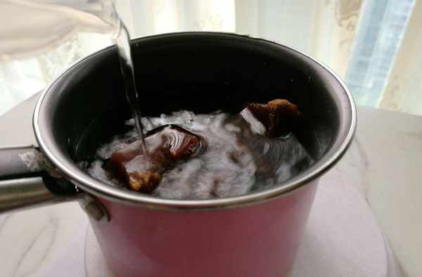 將紅糖加入水中加熱融化放涼待用